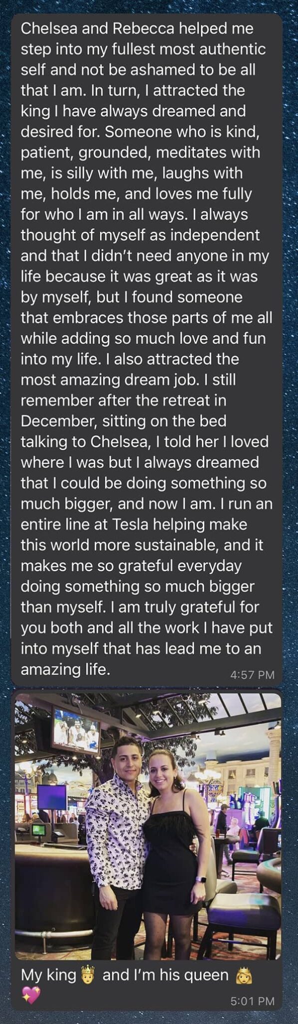 We see women attract their partners at 1 month, 3 months and so on and have massive breakthroughs very quickly upon entering this program. We want you to experience success, absolutely rave about this program and know that it is one of the best decisions that you ever made. With that being said, we understand the natural human desire for comfort, old patterns and what it requires to truly break free, SHED what is not in alignment and attract + create your dream partnership. We discovered that longer coaching containers allow us to fully support you with everything from dating wise to spotting sneaky red flags to choosing the right partner and once you manifest him, knowing how to powerfully communicate inside this new dream partnership and so much more.