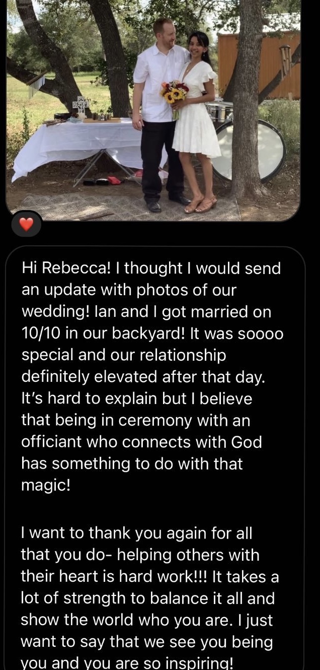 • Virtual Calibrave Day with Rebecca! This will be a powerful day that you will never forget! You will receive a customized “Calibrave Experience” by Rebecca. This is a brave calibrating experience. It is an embodiment exercise designed specifically for YOU, your challenges and your goals that will allow you to bravely deepen into the ways of being you crave and transcend anything standing in the way of you attracting your true love and creating a wildly fulfilling life + relationship with him!